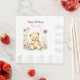 Teddy Bear in Flowers Girl's Birthday Party Napkin
