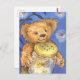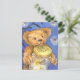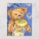 On a warm summer night a teddy bear catches a lightening bug in jar. (He will let him go soon.)