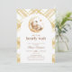 Teddy Bear Moon Gender Neutral Baby Shower invitation features a cute watercolor of a sleeping teddy bear on a yellow moon, with a gingham patterned background. Personalise it with your event details. A beautiful invitation, perfect for your event!