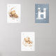 Create a dreamy and cozy nursery atmosphere with this adorable teddy bear wall art set. Featuring three coordinating prints — a sleepy bear on the moon, a cuddly bear on a cloud, and a personalized name print — this collection blends soft beige, cream, and blue tones for a calm, soothing look.