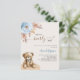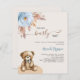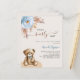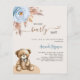 For a modern boho style baby shower. A beige background. Decorated with a dusty blue rose, pampas grass and a teddy bear. Personalise and add a name and party details.