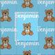 Cute boy teddy bear custom name fabric for your next sewing project. You can change the background colour to any colour that you'd like.