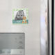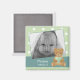 Magnet with cute teddybear carrying a heart. Customise with your child's photo, name and date of birth! Anis and green.