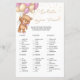 This design features a friendly Teddy Bear with pink and cream balloons. Text "What's in Your Purse" is written in modern calligraphy font.