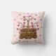 This cute valentine pillow features two cartoon teddy bears sitting side by side underneath a tree with pink hearts hanging from it. Around the perimeter are matching pink hearts and dots as a circle border. Pretty for Valentine's Day or throughout the year! *Thanks to Real Deal Clipart for the clipart used to create this design.