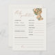 Predictions and Advice Baby Shower Game with Teddy Bear & Script Font