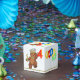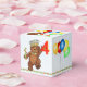 A fun 4th birthday party favour box with your child's name featuring a prince of a teddy bear all decked out in a colourful jewelled crown with a bunch of colourful balloon with letters on them that spell out PARTY. Personalising with your child's name makes it extra special. We specialise in custom-made designs, so contact us if you would like a unique made-to-order layout using this basic royal teddy bear design for your kid's memorable birthday celebration.