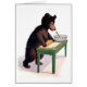 Teddy bear rolling dough on a green table in a vintage illustration from a 1907 children's book.