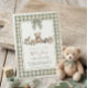 Teddy Bear Sage Green Gingham Bow Baby Shower Invitation