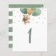 Watercolor Teddy Bear Sage Green and Gold Balloons Baby Shower Table Number Sign.