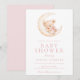 Teddy Bear Sleeping on the Moon Pink Baby Shower Invitation