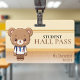 Teddy bear student school hall pass badge for teachers. Customisable brown text. Horizontal orientation. Personalise it by adding your last name and classroom number. Great for back to school for elementary school teachers.