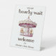 Welcome guests to your twin girl baby shower with this adorable custom pedestal sign! Featuring a sweet watercolor illustration of two cute teddy bears on a charming pink carousel, this sign sets the perfect tone for your celebration. The phrase "we can bearly wait" is displayed in elegantly whimsical typography, adding a playful and heartwarming touch. Easily customisable with your name and baby shower date, this sign is both durable and stylish, making it a beautiful keepsake long after the celebration. Create a magical first impression - order yours today!