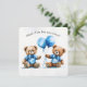 Twin teddy bears with blue balloons and bow ties for a twin baby boy shower invite.