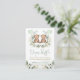 This elegant design features a pair of teddy bear twins holding a sage green heart-shaped balloon framed with gorgeous watercolor greenery wreath