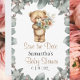 Be the first to know about a new baby shower with our Save the Date Invitation! Featuring a beautiful teddy bear, this design is perfect for celebrating the arrival of a baby. Send out these invitations to your friends, family and co-workers and be ready for some sweet surprises!