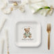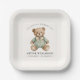 This sweet teddy bear design offers a gentle and comforting way to remember a beloved child. The soft watercolor illustration of a cuddly bear in a pale green romper, complete with a bow, evokes feelings of warmth and cherished memories. Above the bear, the phrase "In Loving Memory of" is gracefully arched, and below, space is provided for the child's name and important dates. These plates are perfect for a memorial gathering or celebration of life, offering a tender tribute to a life that touched so many hearts. Let this design bring a sense of peace and remembrance to your special occasion.