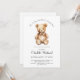 An illustrated unique teddy bear boy baby shower invitation with a saying on the front: we can bearly wait, and white polka dots on a pink background on the back of the invite. Unique and whimsical.