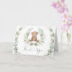 This elegant design features a cute teddy bear holding a sage green heart-shaped balloon framed with gorgeous watercolor greenery wreath