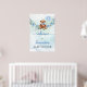 The watercolor cute teddy bear swinging on a eucalyptus wreath with dusty blue flowers is a charming theme for a boy baby shower. This design can be used for a welcome porch sign or a large format poster, creating a whimsical and welcoming atmosphere for the celebration. The soft colours and adorable imagery make it a perfect choice for a sweet and memorable event.