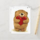 A fuzzy teddy bear holding a big heart for his Valentine that says "Be Mine".
