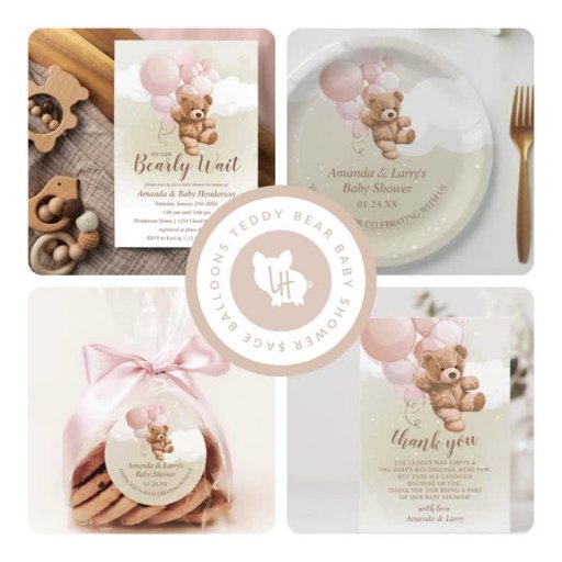 Blush Pink Balloon Teddy Bear Baby ShowerDesigned by Amanda Cudnik