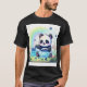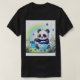 The shirt features a graphic of a cute cartoon panda sitting in a grassy field. The panda is holding and surrounded by blueberries in large bowls or baskets. In the background, there is a soft, colourful rainbow and some flowers. The overall style is whimsical and cheerful.