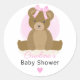 Teddy Bear with Cute Pink Bow Baby Girl Shower Classic Round Sticker
