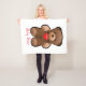 Pretty custom Teddy Bear fleece blanket for a baby. Personalized cute cartoon teddy bear with heart print design and name.