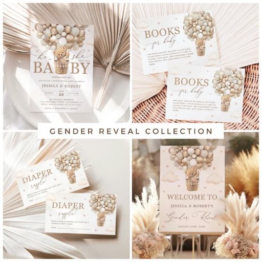 Teddy Bear with Neutral Balloon Diaper Raffle Poster