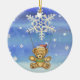 Teddy Bear with Snowflake Parachute Ceramic Ornament