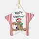 World's Best Dada customisable teddy bear design keepsake holiday ornament features a teddy bear with holiday lights and a stocking cap and an area on the back of the ornament where you can easily personalise it with a name and year or date or other text!