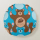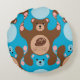 Teddy Bears brown blue Monogram Kid Round Pillow