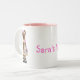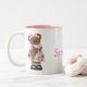 Personalise this adorable mug with your own text. Country primitive artwork of a girl teddy bear all dressed up, and holding a baby teddy bear in it's arms. Cute gift mug for little girls or any mummy to be or new mummy.
