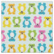 This patterned fabric is perfect for crafting gifts for children and babies. It features cute illustrations of teddy bears in bright colours of pink, orange, yellow, green and blue set against a light mint green background. The print is non-directional.