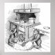 Teddy bears sit on the floor in the kitchen in front of an old fashioned stove trying to figure out what to do with all that dough in this vintage illustration from a 1907 children's book.