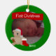 This Teddy First Christmas Ornament features mouse drawn art. Makes a great holiday gift for new parents. Customise with your own photo and text.