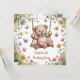 Perfect for a baby boy’s first birthday party. Rope swing with a cute fluffy Teddy bear in watercolor paint with trees and wildflowers.