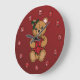 This sweet, brown teddy bear has decked herself with a bit of holly so she can create a great Christmas mood for giving someone special gift of a pretty red poinsettia.
