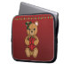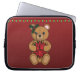 This sweet, brown teddy bear has decked the halls with lights and herself with a bit of holly so she can create a great Christmas mood for giving someone special gift of a pretty red poinsettia.