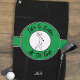 Funny custom design features a male golfer silhouette set in a white shape on a black and green shaped circular border displaying curved text "Life Is Better At Tee Time!" in a modern black script font. You will also find a simple to use template for a monogrammed name, initials or custom text. The background is solid black. If you have any questions regarding this or any of my designs please contact beachpausedesigns@gmail.com. Custom colour requests accepted.