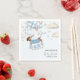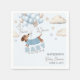 Adorable 'A Teenie Weenie Baby is on His Way' paper napkins - personalized for the mom-to-be's baby shower. The napkins are illustrated with a dachshund in a blue sweater, being carried by a bunch of soft blue and neutral beige balloons, amid stars and fluffy clouds. These unique and charming napkins are perfect for a boy baby shower and will surely bring gentle fun and smiles to the table.