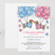 Celebrate your upcoming arrival with a touch of "wiener dog" whimsy! This adorable watercolor gender reveal invitation features two sweet dachshunds wearing coordinated pink and blue heart sweaters, floating among a cloud of heart shaped balloons.