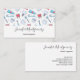 Business cards with a dental themed pattern. Featuring colourful illustrations of teeth, toothbrushes, and various dental tools.