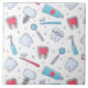 Ceramic tile with a dental themed pattern. Featuring colourful illustrations of teeth, toothbrushes, and various dental tools.