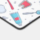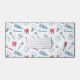 Desk mat with a dental themed pattern. Featuring colourful illustrations of teeth, toothbrushes, and various dental tools.