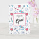 A graduation greeting card with a dental themed pattern. Featuring colourful illustrations of teeth, toothbrushes, and various dental tools.