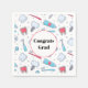 Paper napkins with a dental themed pattern. Featuring colourful illustrations of teeth, toothbrushes, and various dental tools.