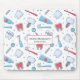 Mousepad with a dental themed pattern. Featuring colourful illustrations of teeth, toothbrushes, and various dental tools.