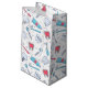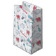 Gift bag with a dental themed pattern. Featuring colourful illustrations of teeth, toothbrushes, and various dental tools.